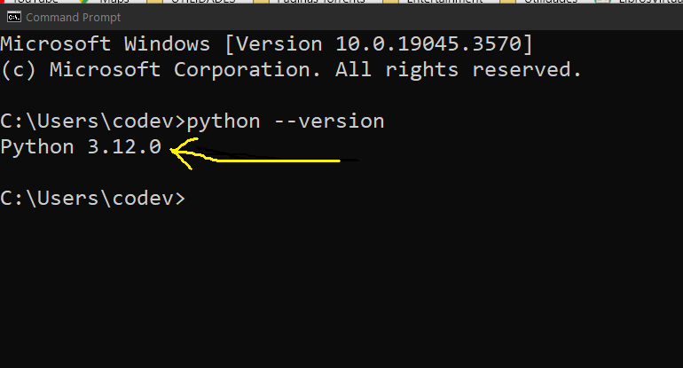 - Escribe python o python3 y presiona Enter. Esto debería abrir el intérprete de Python y mostrar la versión instalada.